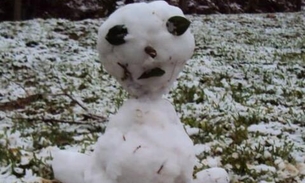Boneco feito em papel machê, cobertura de algodão neve brasil. Aqui no brasil isso era impossível, pois além de não ter neve, dezembro é tão calor.